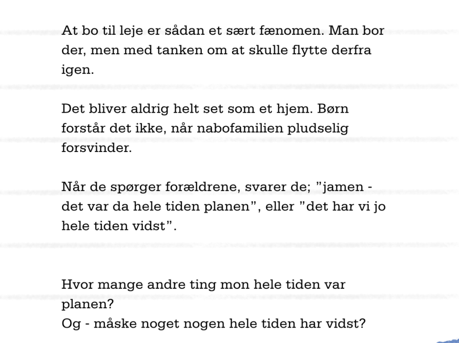 At bo til leje er sådan et sært fænomen. Man bor der, men med tanken om at skulle flytte derfra igen.